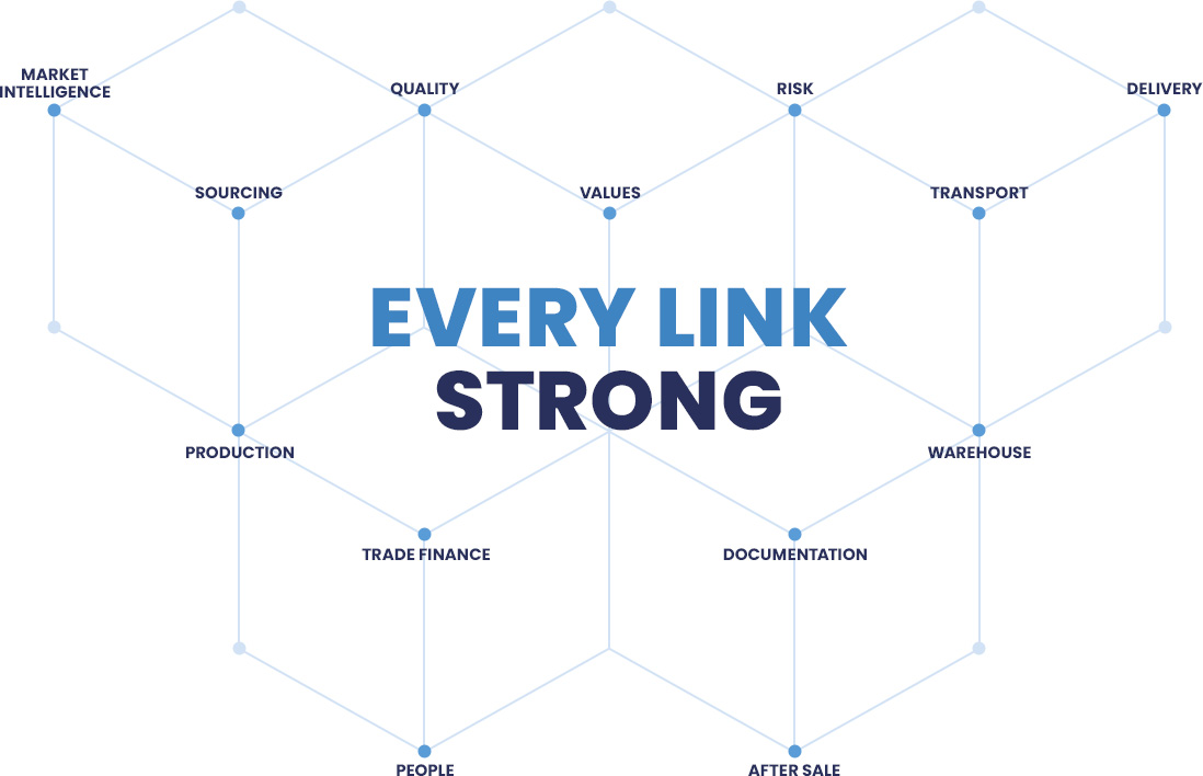 We connect local markets to global steel supply. We commit to providing our suppliers with avenues to diverse markets, maintaining production volumes and contributing to their growth. For our clients, we promise competitive pricing and quality assurance, managing complexities to deliver straightforward, reliable solutions. Every Link Strong means each step—sourcing, production, market intelligence, trade finance, documentation, transport, delivery and after-sale—is measured, managed and continuously improved.